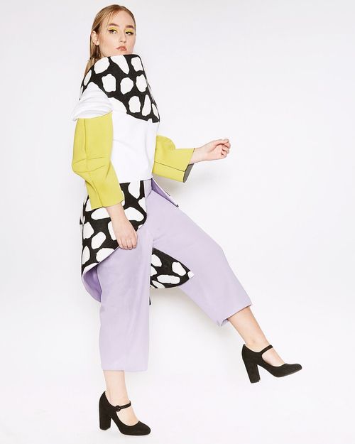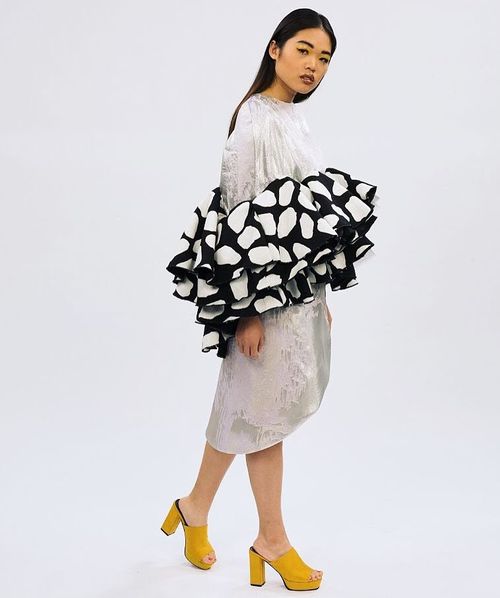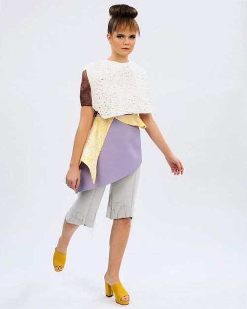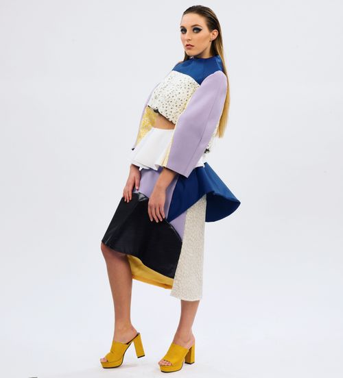 Bananas and Cream displays a high fashion interpretation of beetles and similar bugs that exude intricate structures, colors, and patterns that are not traditionally viewed as beautiful. The concept for the line drew through the travels and experiences that have opened my eyes to all unordinary beauties. Exhibited in shaped textiles which interpret shells, wings, and bodies of different insects; this collection is built for women with bold personalities who are looking to be seen in a different light to the world. The overall goal was to design and construct something that hasn't been made before to help provoke inspiration in others to create artwork of their own. The title for the line was chosen because of the uniqueness of the line itself. It somewhat represents what the garments look like as a whole with their pastel colors; but also, certain bugs have been known to hide inside of bananas, so the line as "Bananas and Cream" is a play on the tasty, fun, and different likeness of the collection.